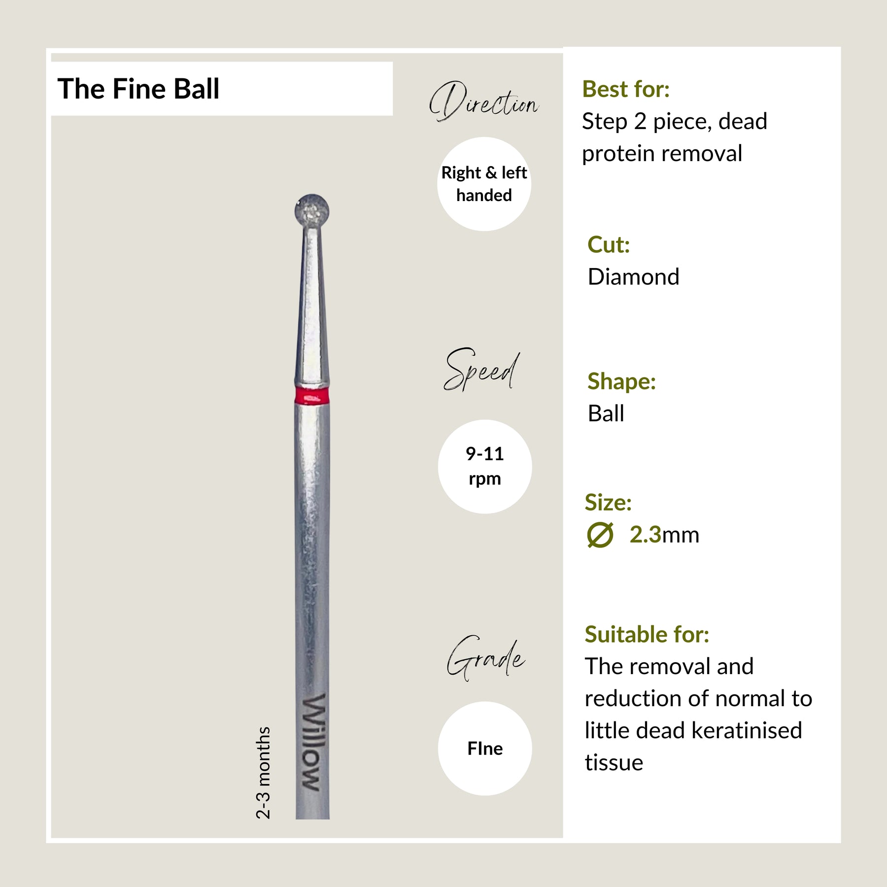 A variation of one of our best sellers - the "Fine Ball" is the perfect shape for removing dead protein and cuticle in place of cuticle nippers.