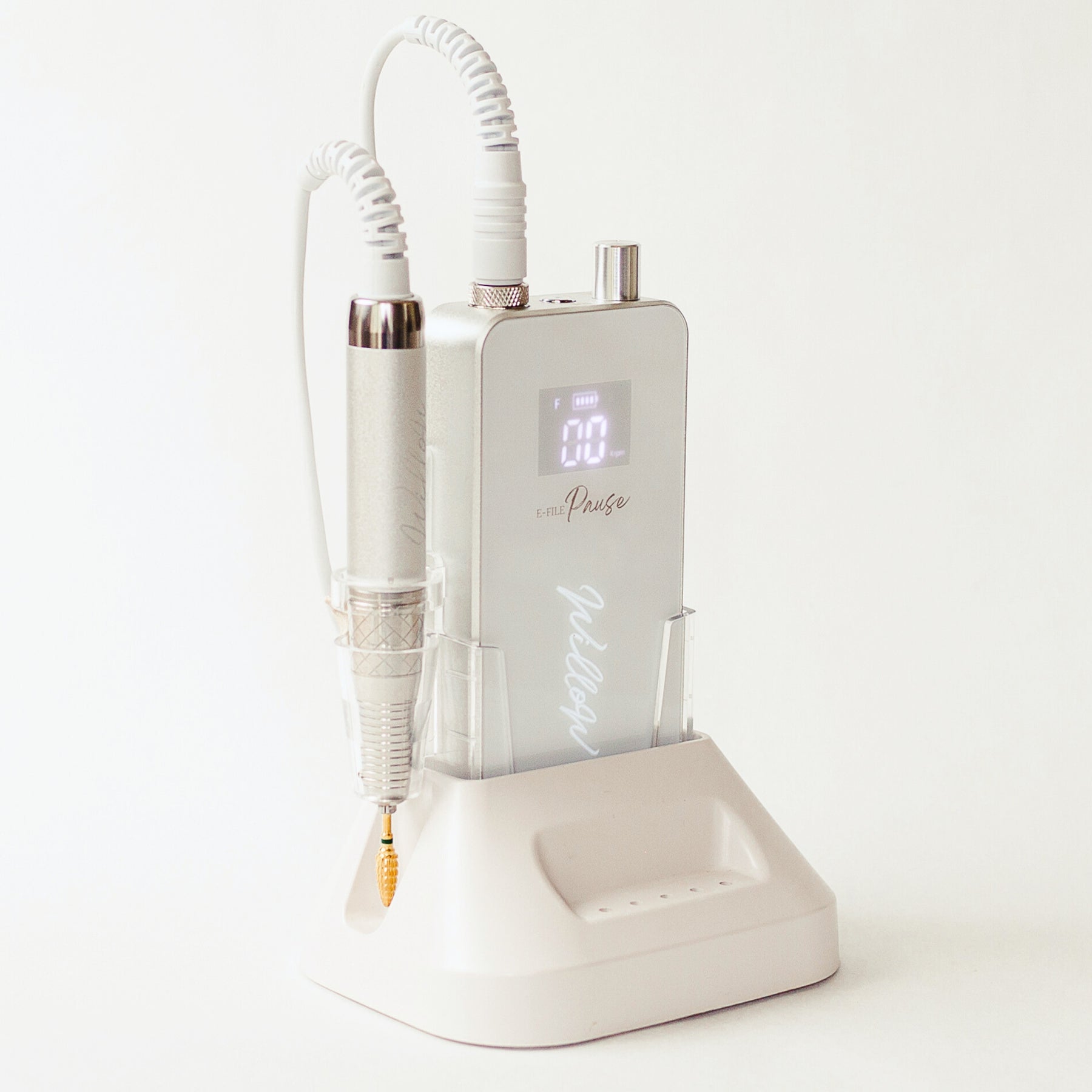With its sleek design, it's a compact and convenient choice for on-the-go e-filing and will also sit discreetly in its dock on your tabletop. The lightweight hand-piece is brushless and silent with no vibration for super smooth removals and perfect prep.
