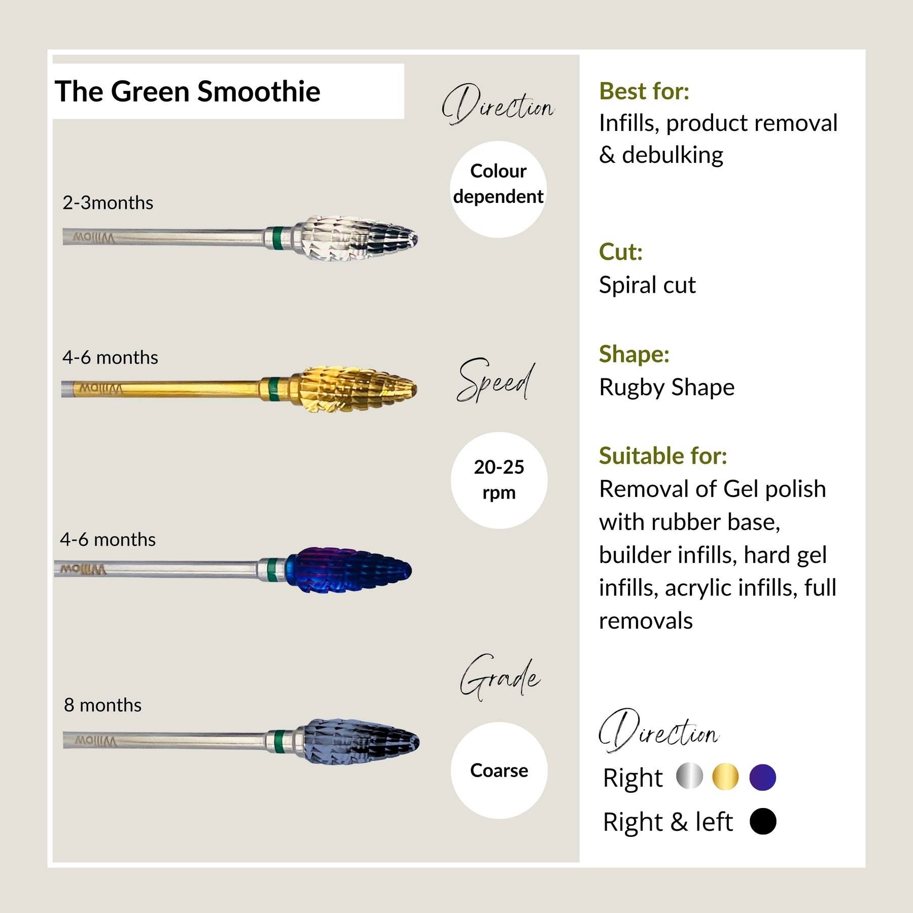 This speciality carbide is perfect for removal of Gel polish with rubber base, builder infills, hard gel infills, acrylic infills & full removals.