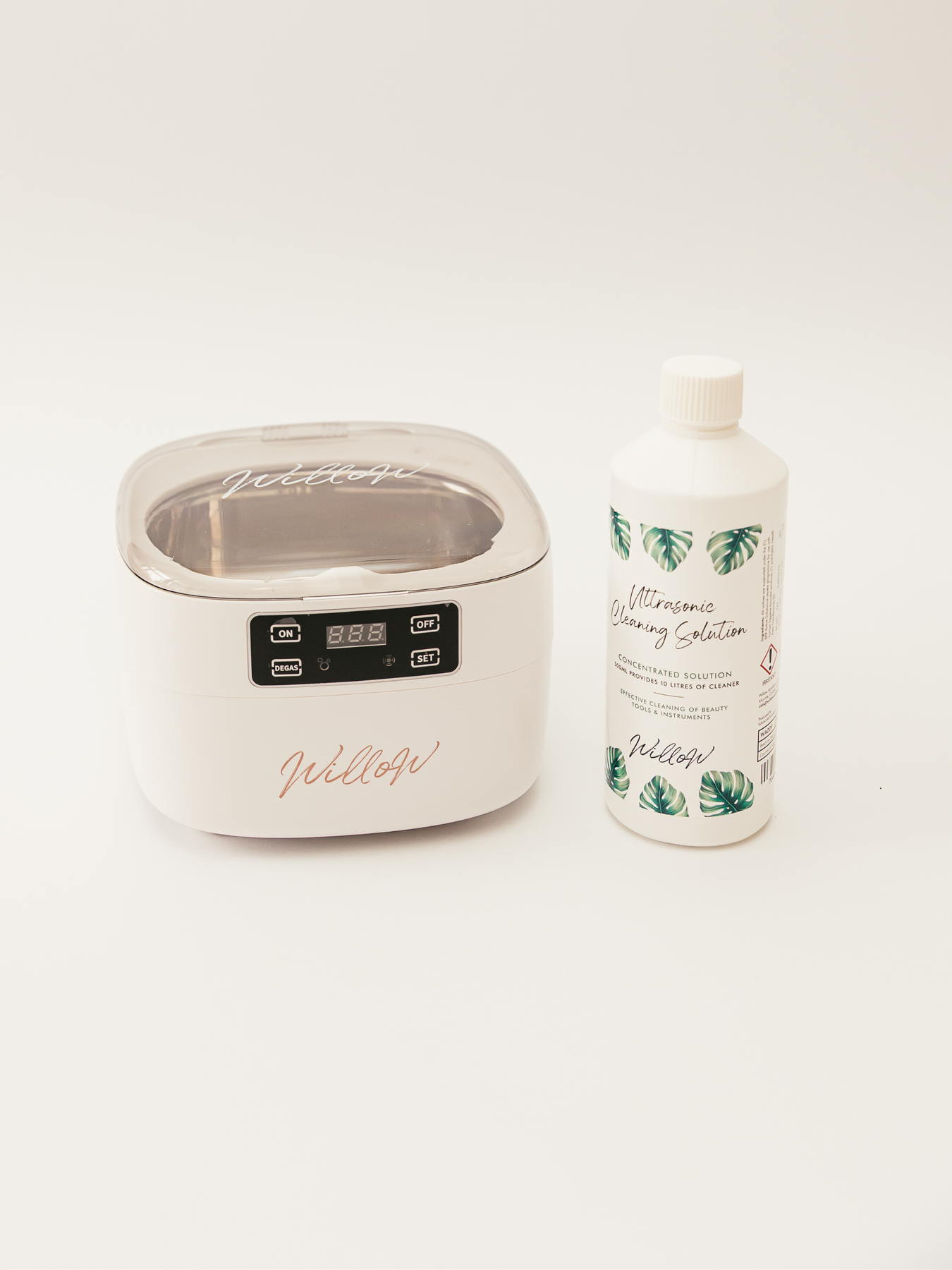 The Willow Ultra Cleanse is an ultrasonic cleaning machine which provides effortless and efficient cleaning for your E-file bits, manual tools and beauty implements. Its advanced ultrasonic technology delivers superior cleaning results with no scrubbing or brushing necessary. Get back your time with effortless removal of debris from hard-to-reach areas. When combined with the Ultrasonic Solution, this is your one stop shop for cleaning - no more scrubbing - wave goodbye to manual cleaning!